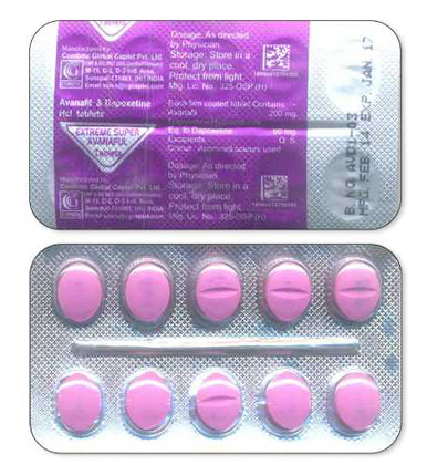- Den vanliga dosen av Extra Super Avana Ă€r 1 tablett (200 mg Avanafil + 60 mg Dapoksetin) som tas 30â60 minuter före sexuell aktivitet.